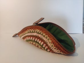 Dit leuke makeup tasje is gehaakt met restjes katoen en gevoerd met stof van De Waard tent. De eerste foto is hoe de kleuren echt zijn. Dit tasje kan je bestellen via de webshop
